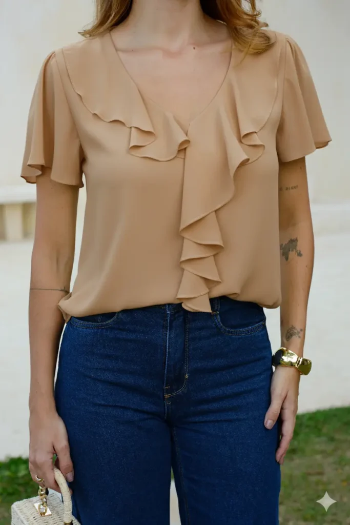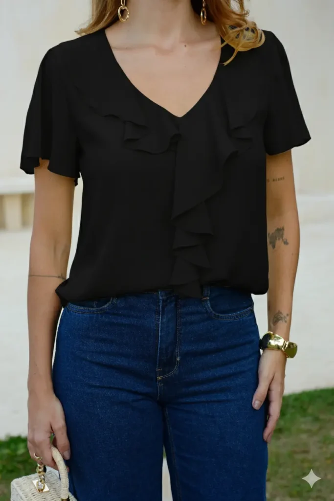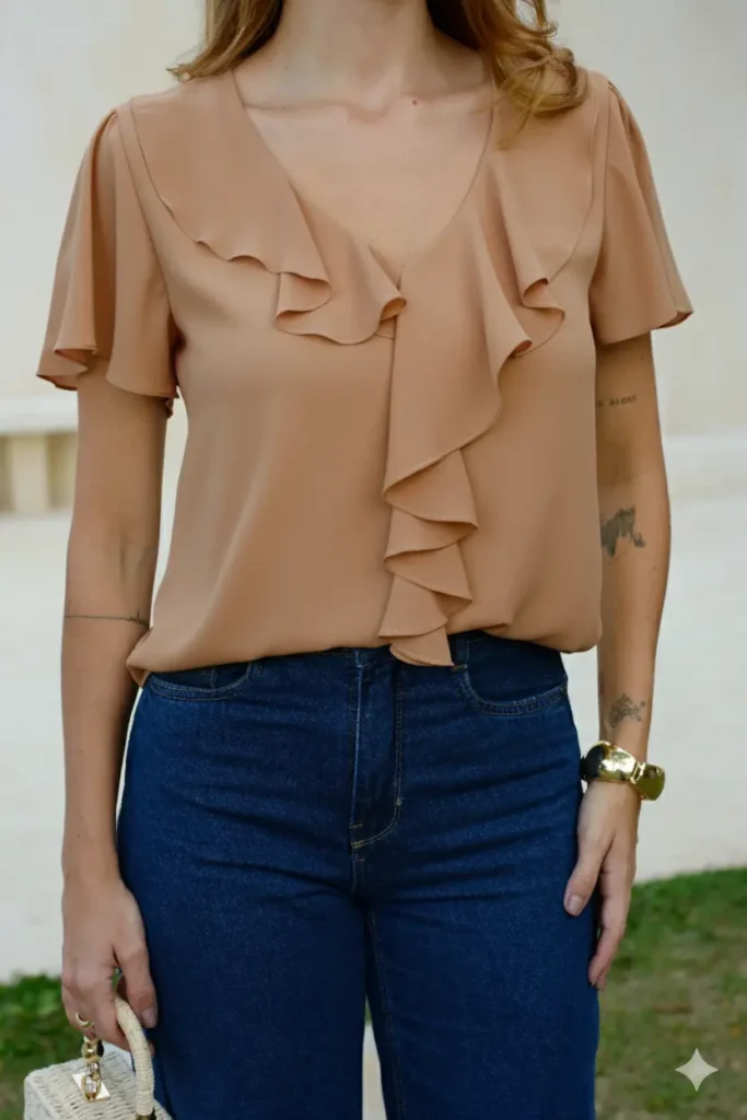 Blusa Elegância Fluida com Babado – Perfeita para Seus Looks!