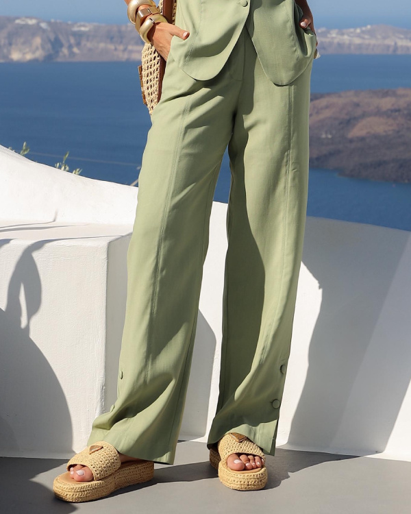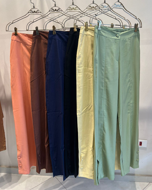 O destaque fica por conta dos delicados botões forrados na barra, um acabamento primoroso que eleva instantaneamente o status do seu look. Essa calça é a definição de versatilidade sofisticada: combine-a com camisas de seda para o escritório, regatas fluidas para um jantar especial ou blusas cropped para um evento casual chic. Super elegante para você brilhar em qualquer ocasião!