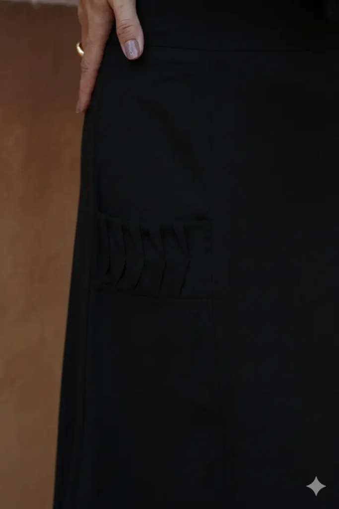 Eleve seus looks com a elegância minimalista da saia midi. Confeccionada em viscose, ela oferece um caimento leve, fluido e extremamente confortável. O cós largo não apenas garante um ajuste perfeito, mas também adiciona um toque moderno e sofisticado ao design.
